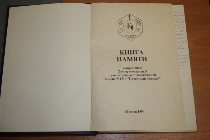 Это одна из двух Книг Памяти, которые в 1994 году создал 3-ий выпуск для того, чтобы выпускники могли записать, что они думают о Колледже, свои пожелания Колледжу. В "светлую книгу" выпускники пишут о том, что им понравилось в Колледже, о том, что дорого, что необходимо сохранять. В "тёмную книгу" - о том, что не нравится, что хотелось бы изменить. На титульной странице каждой Книги Памяти - один из вариантов Знака Колледжа, к разработке которого причастен и куратор этого выпуска Алексей Николаевич Бочков.