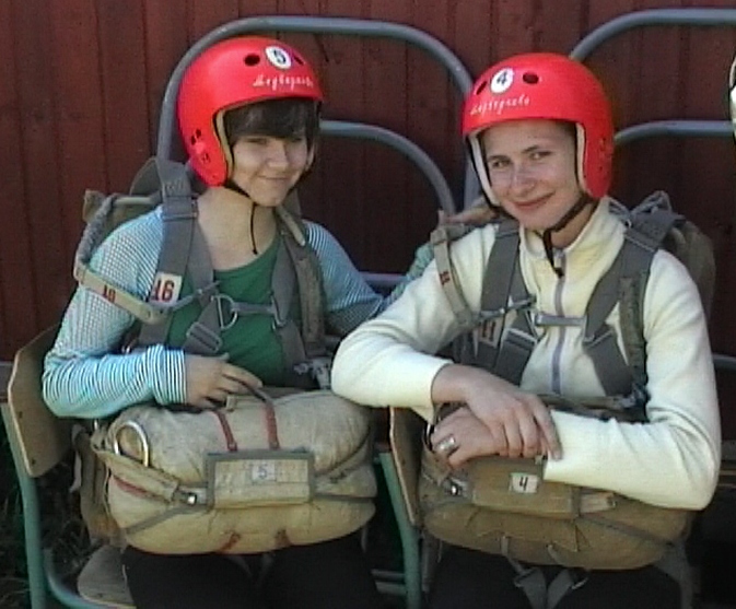 По окончании 1 курса института, сдав сессию на отлично, Машки решили, что для полного счастья им надо прыгнуть с парашютом. Перед полётом немного волнуются. Начало "высоких" отношений.