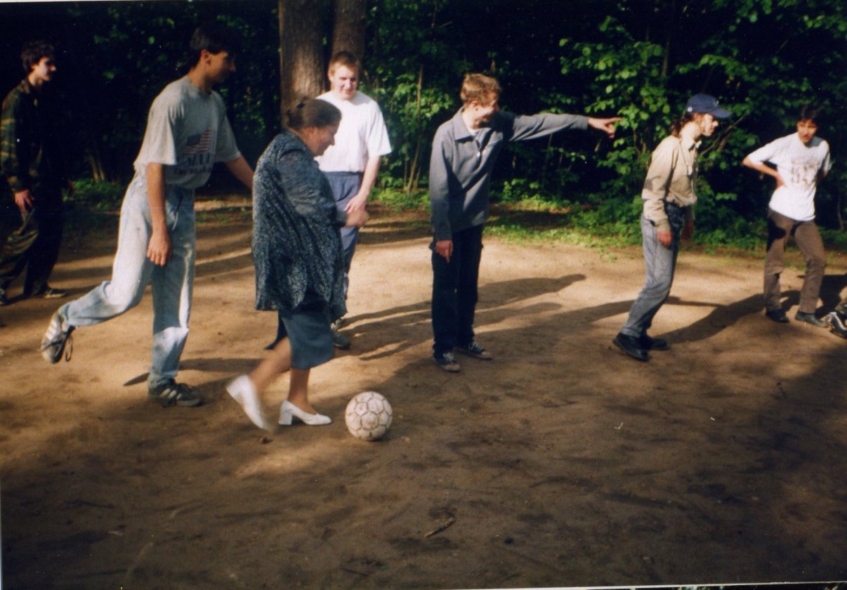 Футбол - любимая игра класса. Директор школы Людмила Владимировна приняла в ней активное участие, несмотря на  совсем не спортивную форму :)