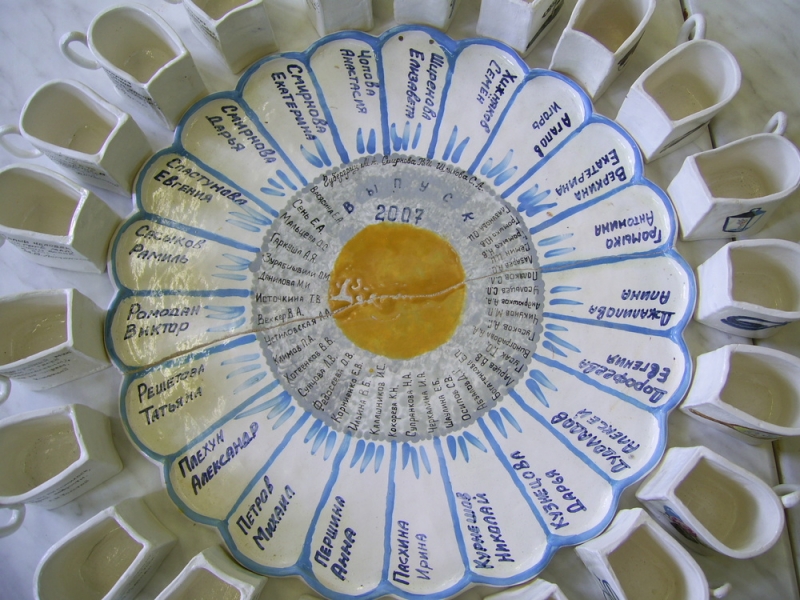 На этом снимке каждая кружка стоит напротив своего места на подносе