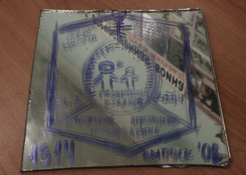 Насколько мы знаем, это "рефлексивное зеркало" - своего рода "отражение" и "продолжение" зеркала со схемой рефлексии с 15-летия Колледжа. Создали его ученики будущего 15-го выпуска.