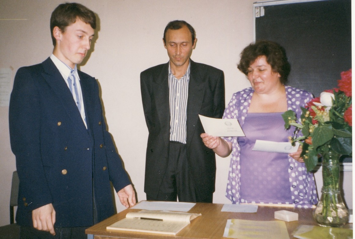 Артем Крылов - первый серебряный медалист Проектного Колледжа получает аттестат.