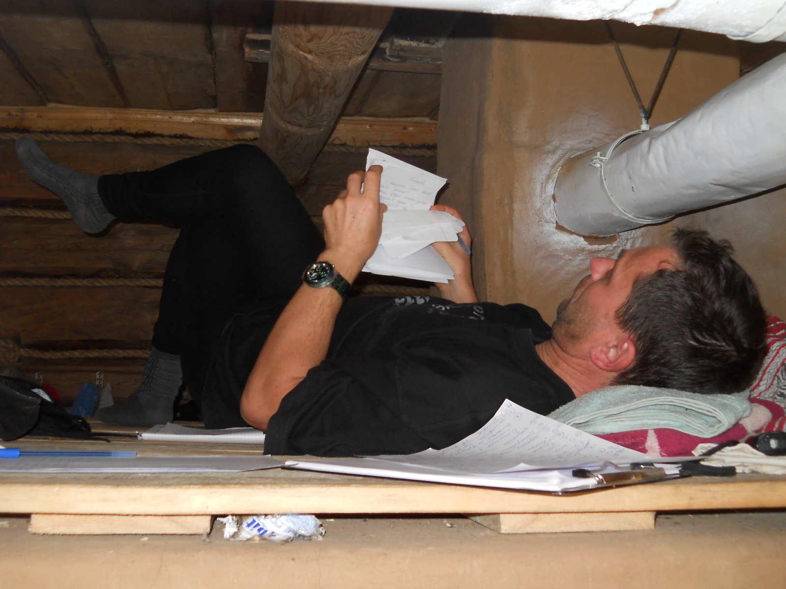 4. Комплект одежды для сна: шерстяная шапка, футболка, теплый свитер, теплые штаны, х/б носки, шерстяные носки.