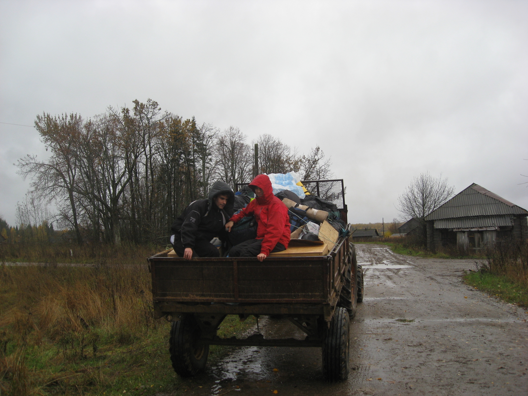 На тракторе наши рюкзаки